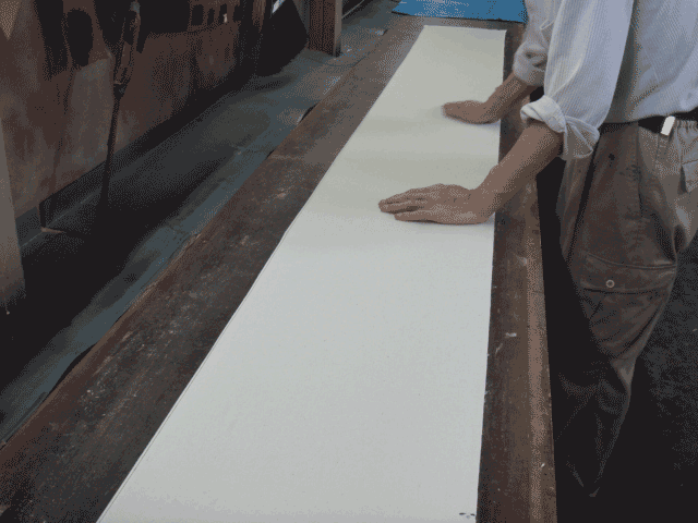 すごい機械もありません。布を張る長い板や、手ぬぐいを仕上げるローラーなどの大きな道具はありますが。